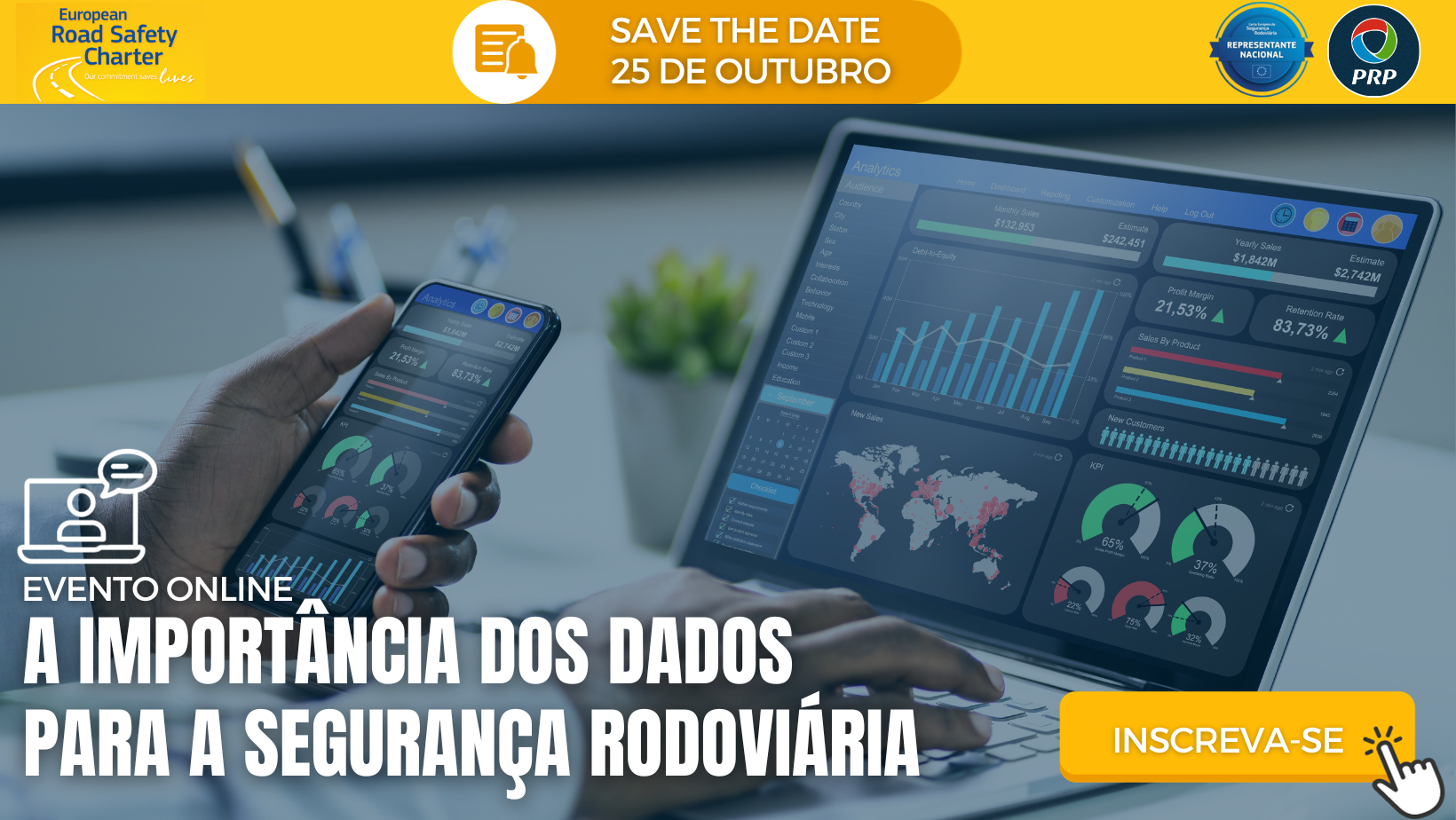 A Prevenção Rodoviária Portuguesa, como representante nacional da Carta Europeia de Segurança Rodoviária, tem a honra de convidar V. Exa. a assistir à conferência “A importância dos dados para a Segurança Rodoviária” que será transmitida via streaming, no dia 25 de outubro de 2023.